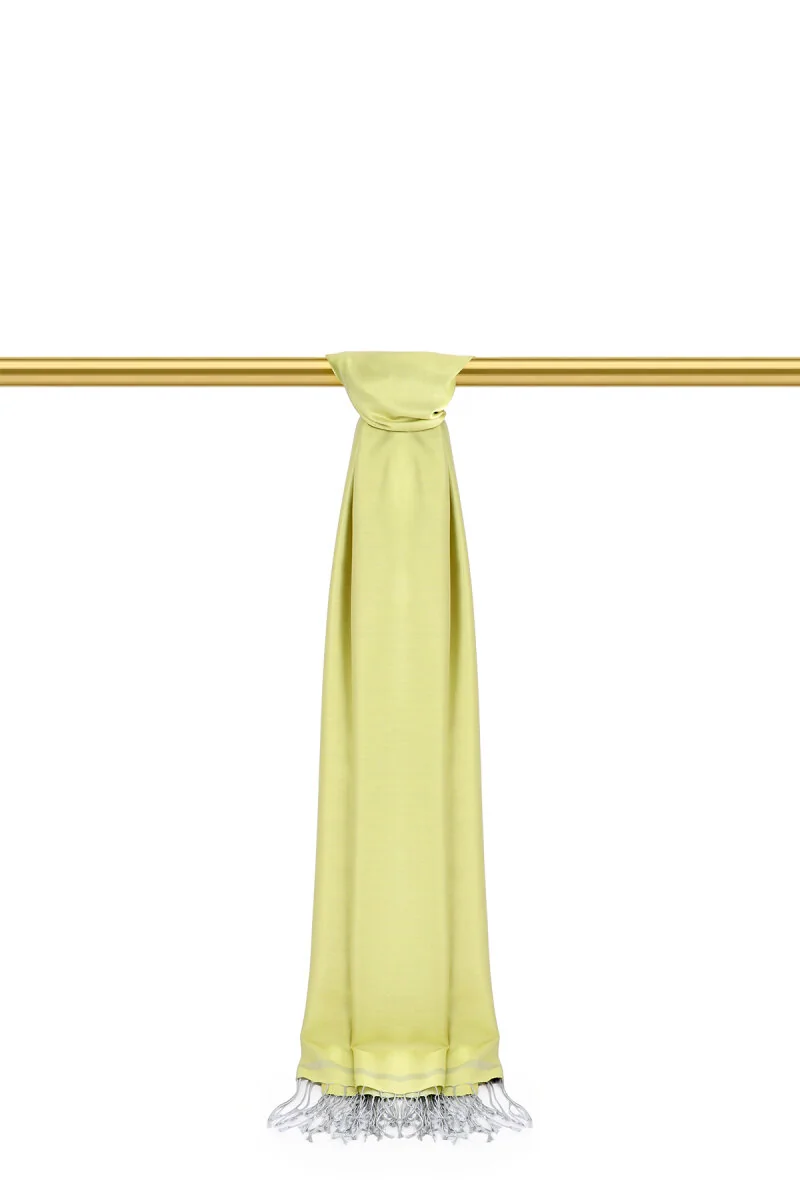 The Lime Gray Double-Sided Silk Shawl is crafted from 100% silk, offering a luxurious feel and elegant look. With dimensions of 70×200 cm, it provides comfortable wearability. Its design allows you to use either side, making it a versatile accessory for various outfits. Originating from Bursa, Turkey, this shawl stands out with its structured form and shiny finish.