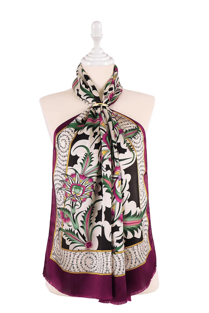 The Mauve HaliƧ Pattern Silk Scarf adds elegance to any outfit, suitable for both formal meetings and art gallery visits. Made from 100% silk, it offers a luxurious feel and ease of use with dimensions of 55×160 cm. The intricate design originates from Bursa, Turkey, known for its rich textile heritage.