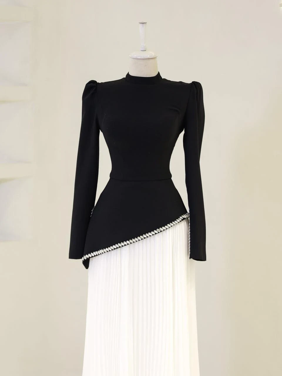The Medina Modest Evening Dress offers a sophisticated look with its fitted design, suggesting customers to opt for a size larger than their usual. The dress measures between 150-155 cm in length and is crafted with a crepe upper and chiffon lower part. It includes a lining for added comfort. The dress is equipped with a back zipper and lacing for secure wear. The cuffs are designed with slits, and it features a built-in chest pad. The embellishments are adhesive, and the dress has a flared skirt form.