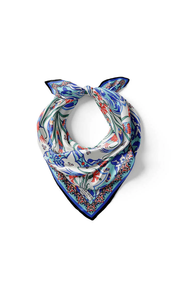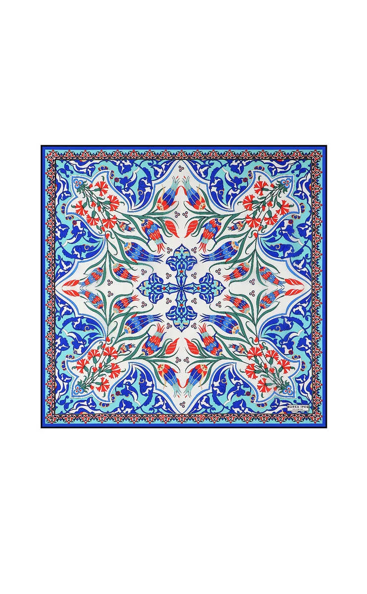 This Mint Blue Carnation Tulip Pattern Silk Handkerchief combines traditional Turkish motifs with a contemporary touch. Crafted from 100% silk, it offers a thick, soft, and refreshing feel. The handkerchief measures 55×55 cm, providing ease of use while maintaining an elegant appearance. Originating from Bursa, Turkey, this piece is a blend of comfort and timeless style.