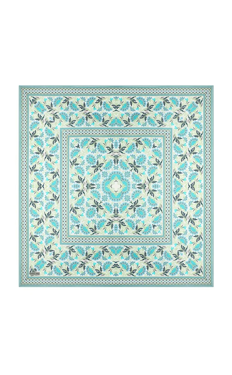 The "Mint Karanfil Desen Twill İpek Eşarp" is a scarf featuring a carnation pattern, crafted from 100% twill silk fabric. Measuring 90×90 cm, it combines classic and modern styles and originates from Bursa, Turkey.