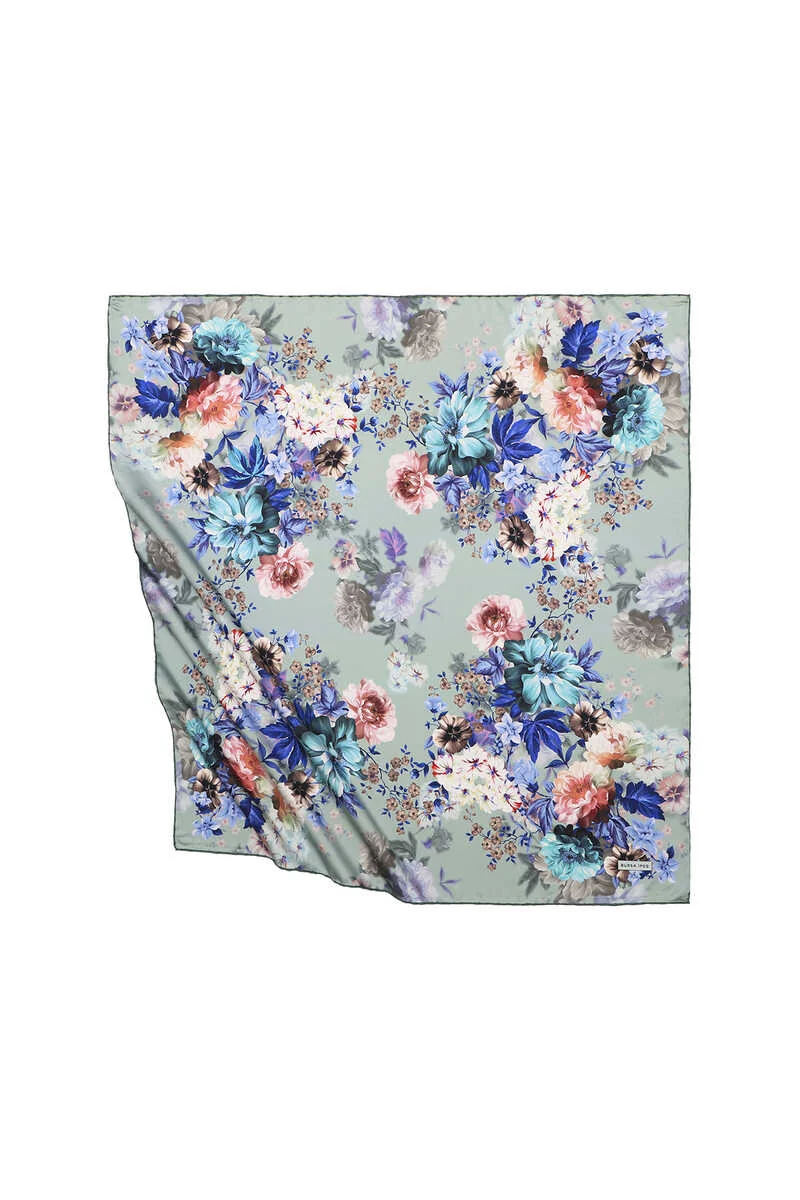The Mint Fulya Desen İpeksi Eşarp is a scarf made from 100% silky rayon fabric, measuring 90×90 cm. It features vibrant colors and floral patterns, originating from Bursa, Turkey.
