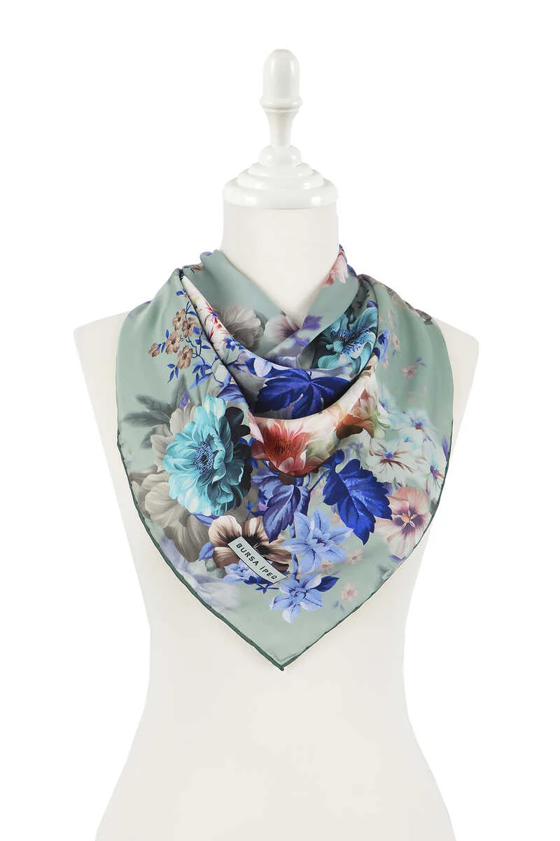 The Mint Fulya Pattern Silky Scarf combines vibrant and bright colors with a classic design. Crafted from 100% silky rayon fabric, it offers an elegant look and feel. Its 90×90 cm dimensions provide ease of use, making it a versatile accessory for any wardrobe. Originating from Bursa, Turkey, this scarf brings energy to your style with its floral patterns.