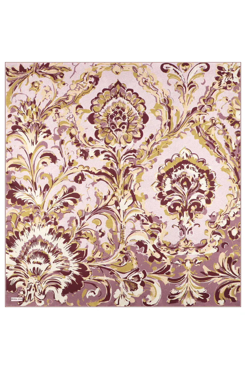 The Mürdüm Flower Desen Twill İpek Eşarp is a 90 x 90 cm scarf made from 100% twill silk, featuring eye-catching floral patterns. It originates from Bursa, Turkey and complements both modern and classic styles.