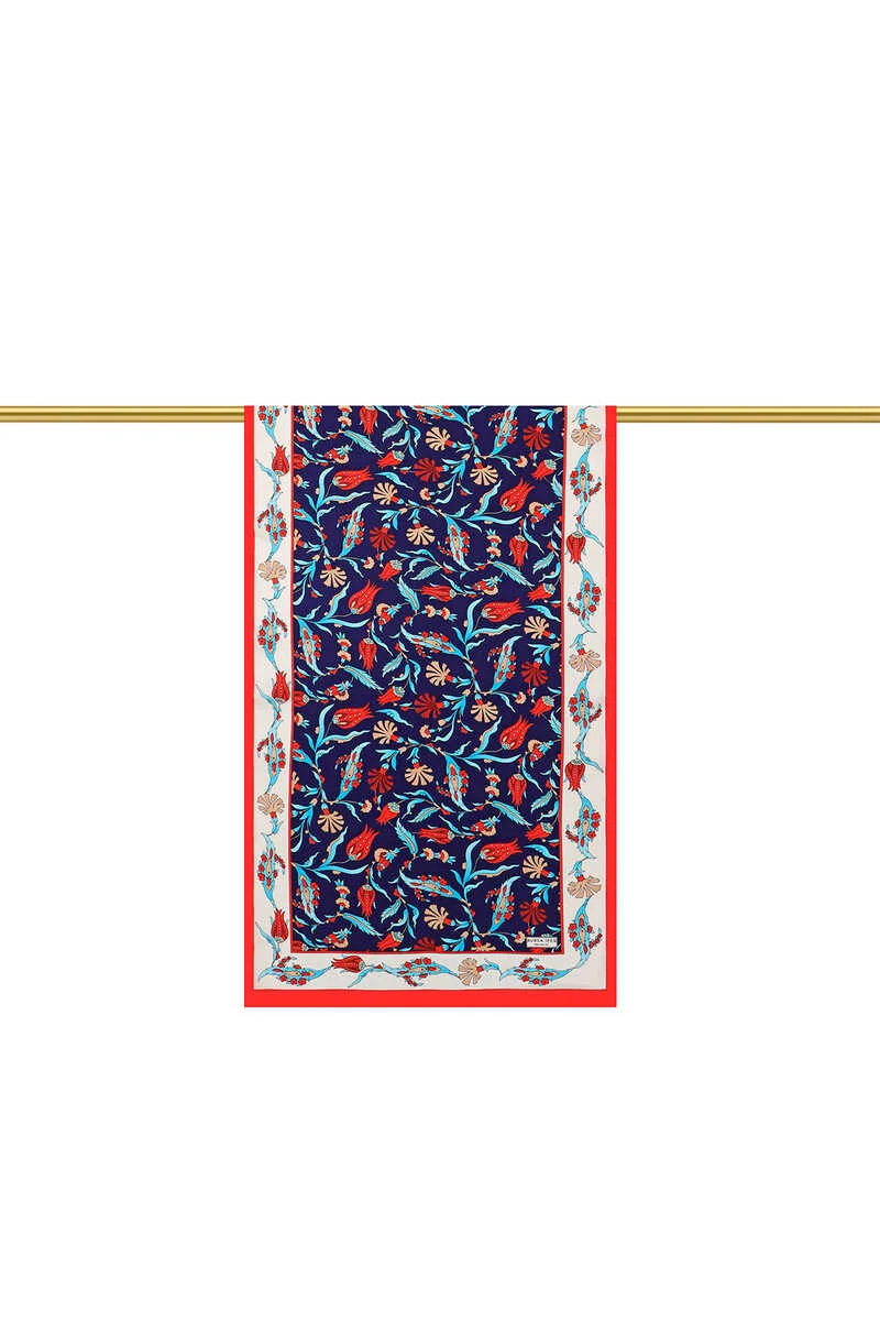 This Navy and Ivory Carnation Tulip Silk Scarf enhances your style for any occasion, from business meetings to art galleries. Crafted in Bursa, Turkey, it features a striking floral design. The scarf is made from 100% silk, offering both elegance and comfort. With dimensions of 55×160 cm, it provides ease of use and versatility in styling.