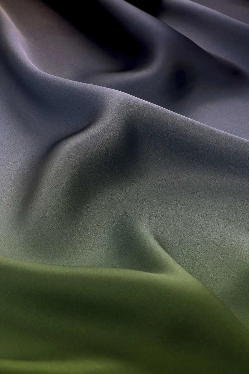 This navy and green gradient sura silk scarf adds a touch of elegance to any look. It features a minimalist design that suits every season. Crafted in Bursa, Turkey, it is made from 100% silk and measures 90×90 cm, ensuring comfort and style.
