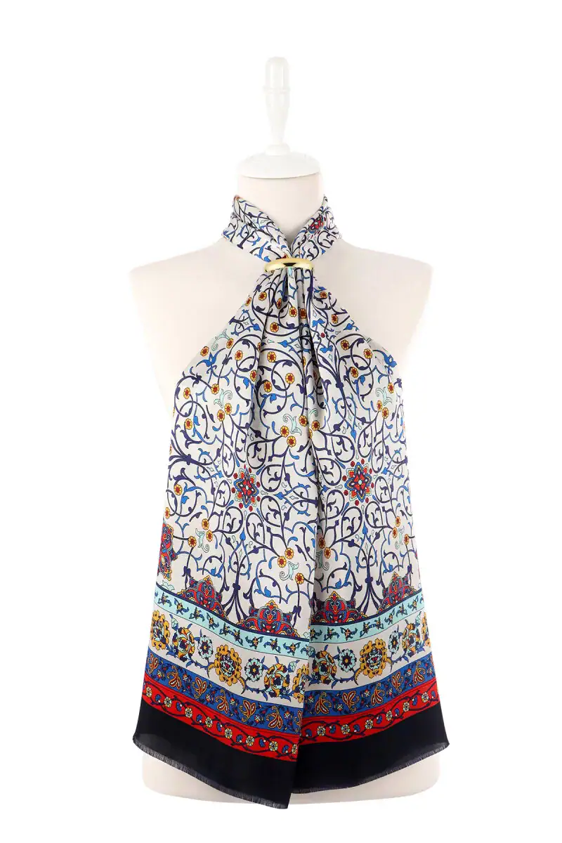 This Navy Ivy Pattern Narrow Silk Scarf adds sophistication to any outfit. Made from 100% silk, it measures 45 x 165 cm, offering ease of use. The eye-catching design is crafted in Bursa, Turkey, known for its rich textile heritage.