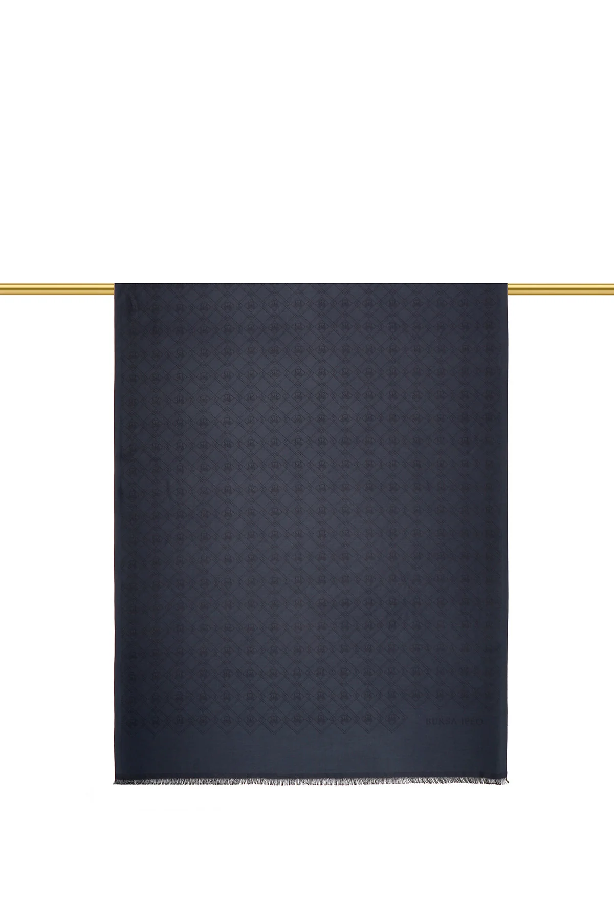 The Navy Monogram Pattern Jacquard Silk Shawl combines elegance with sophistication. Featuring a jacquard texture, it offers a striking appearance with depth in its design. The natural sheen of the silk fabric makes this shawl unique and stylish. Originating from Bursa, Turkey, it is crafted entirely from silk and measures 70 x 200 cm, providing ease of use and versatility in styling.
