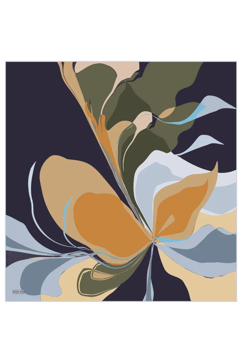 The Navy Orchid Pattern Twill Silk Scarf combines unique elegance with practicality. Crafted from 100% silk, this scarf offers a luxurious feel and is sized at 90×90 cm for versatile styling options. Originating from Bursa, Turkey, it reflects the region's rich textile heritage.