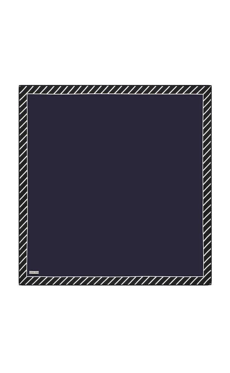 The Lacivert Çizgi Desen Twill İpek Eşarp is a navy blue scarf with a simple striped design, made from 100% twill silk. It measures 90 x 90 cm and is produced in Bursa, Turkey.