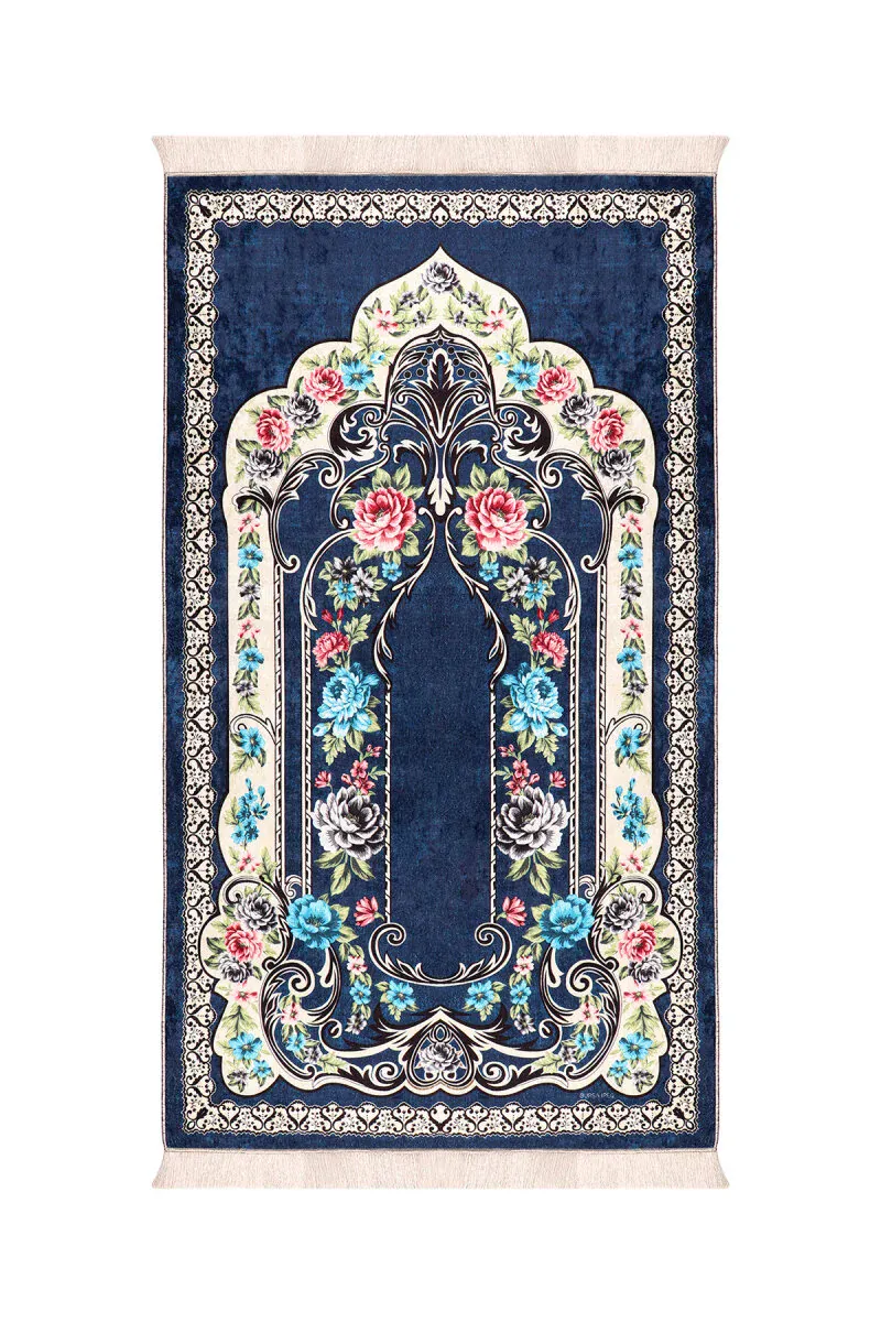 The Lacivert Süngerli Kadife Seccade is a velvet prayer rug designed for comfort and elegance, featuring a soft velvet surface and sponge filling for support. It measures 65 x 115 cm and is made in Bursa, Turkey.