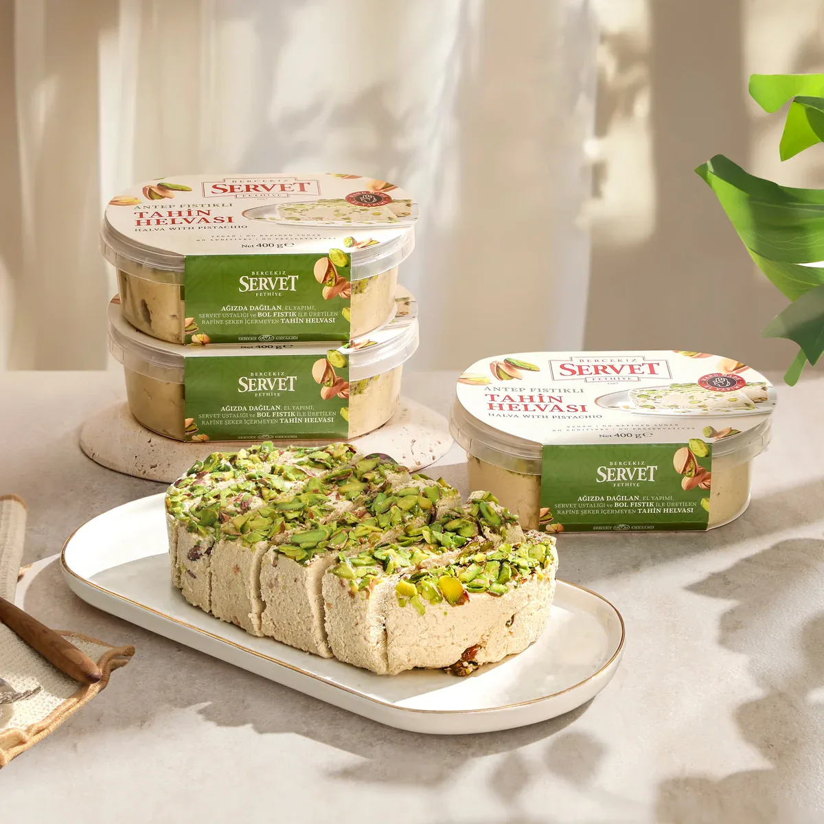The "Rafine Şeker İlavesiz Antep Fıstıklı Taze Tahin Helvası 3'lü Paket" is a tahini halva produced in Fethiye, Turkey, using only natural date juice as a sweetener instead of refined sugar. It is recommended to try this product, which is one of the best-selling tahini halvahs on online marketplaces in Turkey.