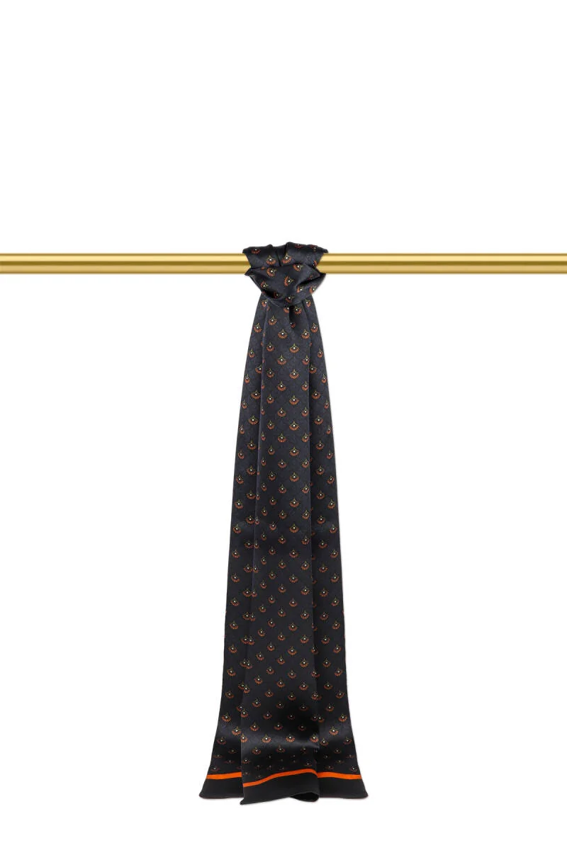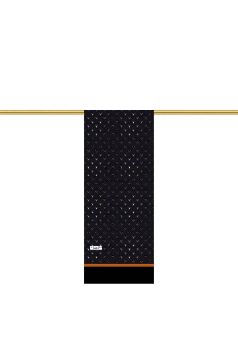 The Turuncu Desenli Erkek İpek Kaşkol is a men's silk scarf featuring unique patterns and colors. Made from 100% silk, it measures 25×160 cm and originates from Bursa, Turkey.