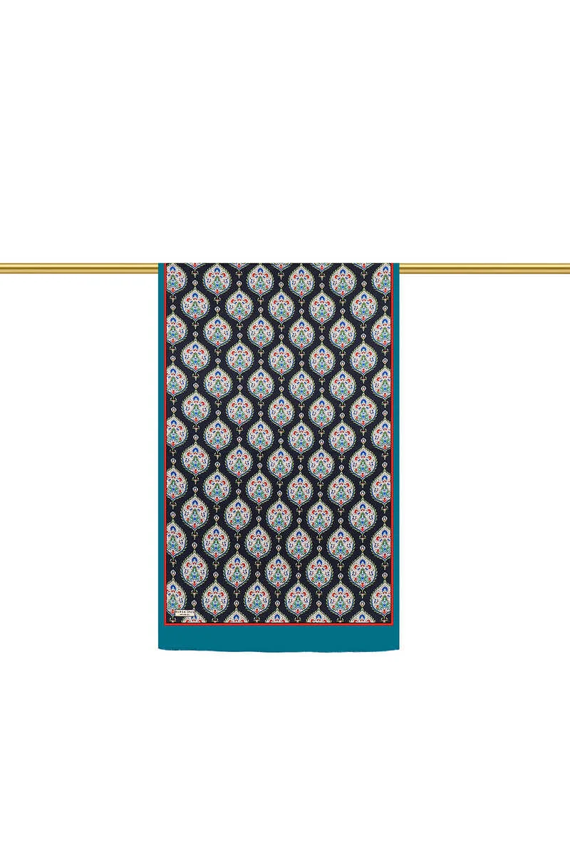 The Petrol Yeşil Hatai Desen İpek Fular is a silk scarf featuring eye-catching patterns in petrol green. Made from 100% silk and measuring 55×160 cm, it originates from Bursa, Turkey.