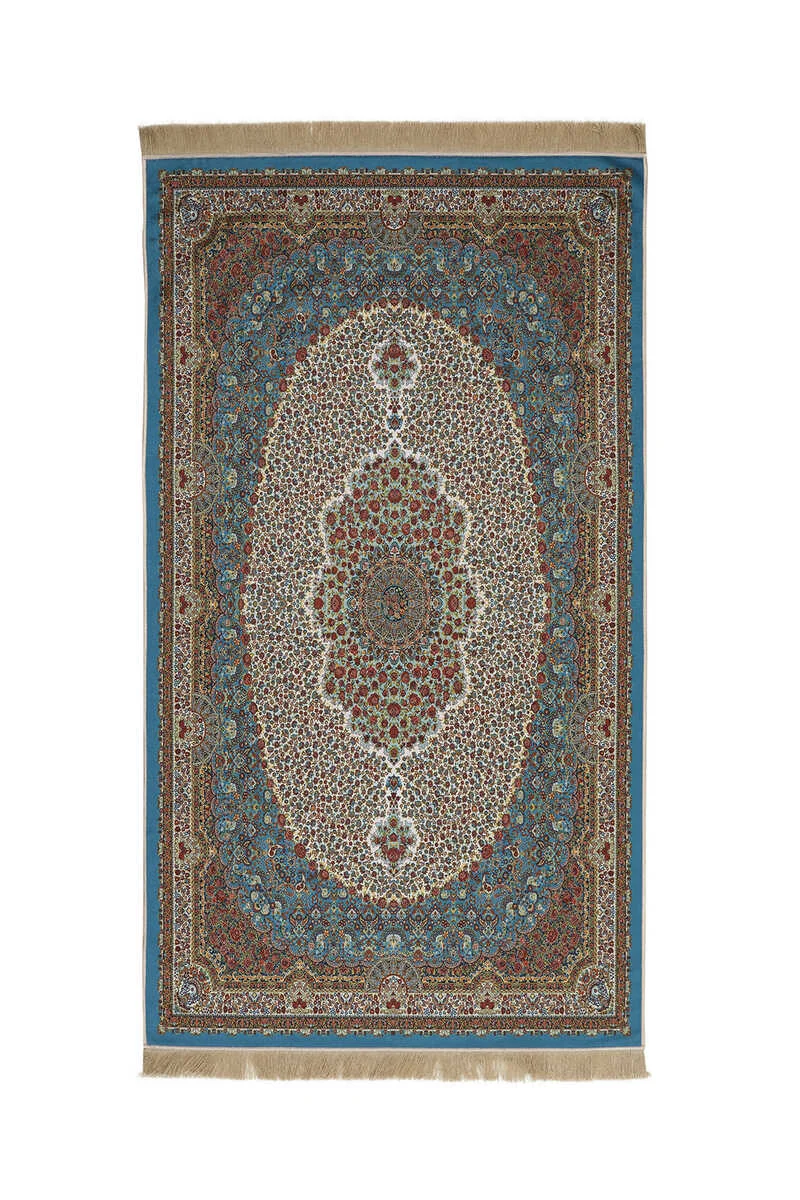 The Petrol Yeşil Kadife Halı Seccade features a silky texture and eye-catching colors with Turkish motifs and ceramic patterns. It is designed for comfortable use with dimensions of 65×115 cm and originates from Bursa, Turkey.