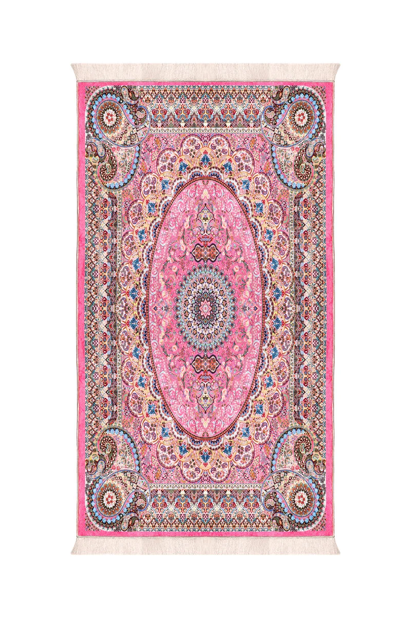 This pink velvet prayer rug is crafted to enhance your prayer experience with comfort and style. It features a high-quality velvet fabric on the top that feels gentle against your skin. Inside, the sponge padding supports your knees and feet, ensuring comfort even during extended use. Measuring 65 x 115 cm, it offers ease of use and is made in Bursa, Turkey.