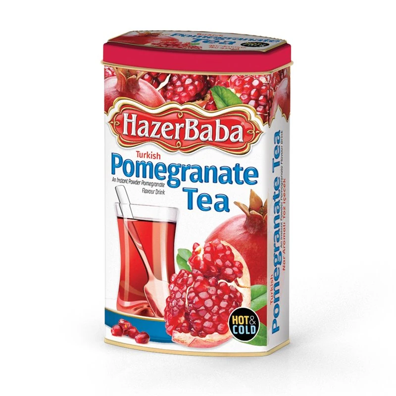 This powdered drink features a pomegranate flavor, combined with ingredients such as pistachios and salt. It may contain traces of other tree nuts, gluten, and sesame.
