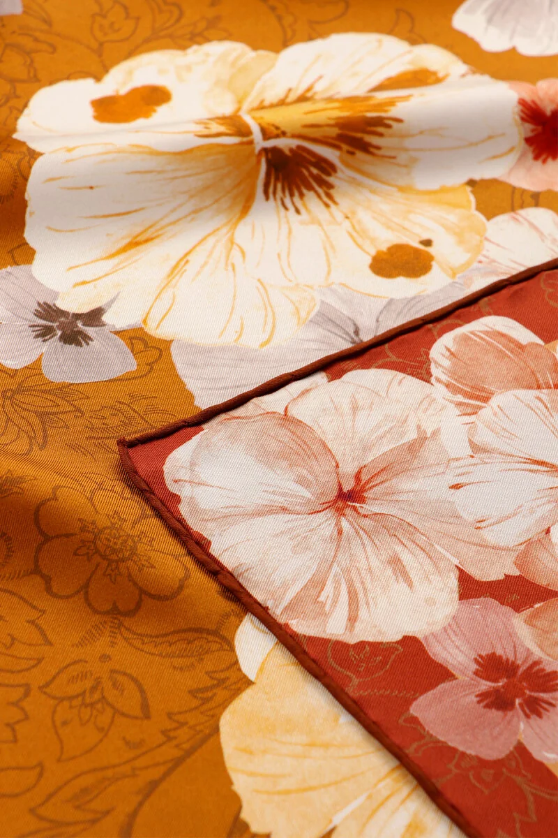 Poppy Pattern Double-Sided Twill Silk Scarf