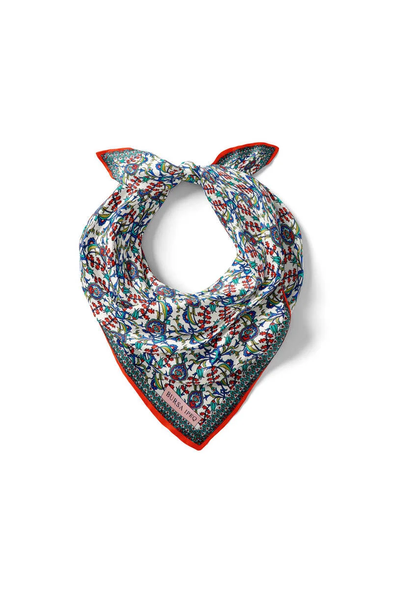 The Red Ivy Tulip Pattern Silky Handkerchief adds a touch of elegance to both classic and casual styles. Crafted from silky rayon, it features hand-rolled stitching for a refined finish. With dimensions of 55×55 cm, it offers comfortable use. Originating from Bursa, Turkey, this handkerchief combines traditional craftsmanship with modern design.