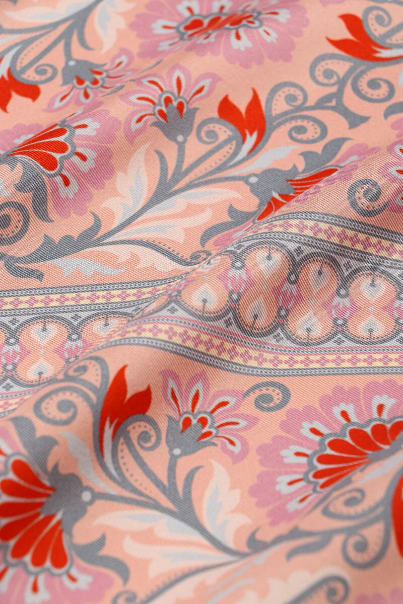 The Somon Karanfil Desen Twill İpek Eşarp features a carnation pattern and is crafted from 100% twill silk. Measuring 90×90 cm, it combines classic and modern styles, offering ease of use.