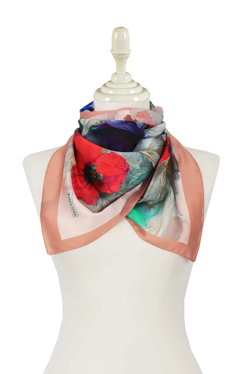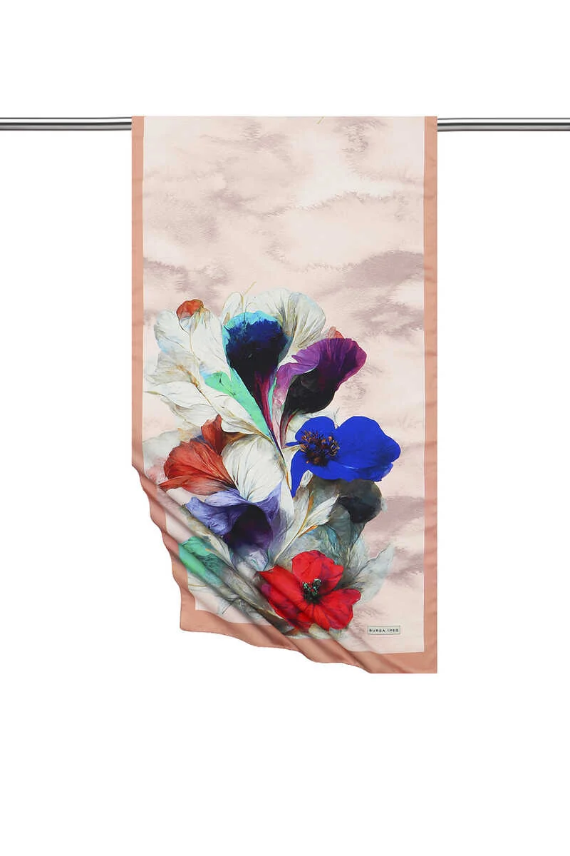 This scarf features a salmon poppy design on silky rayon fabric, combining bright and lively colors for a fun yet classic accessory. Measuring 45 x 160 cm, it offers ease of use and adds energy to your style with its floral patterns. Originating from Bursa, Turkey, this scarf is crafted to enhance any outfit.