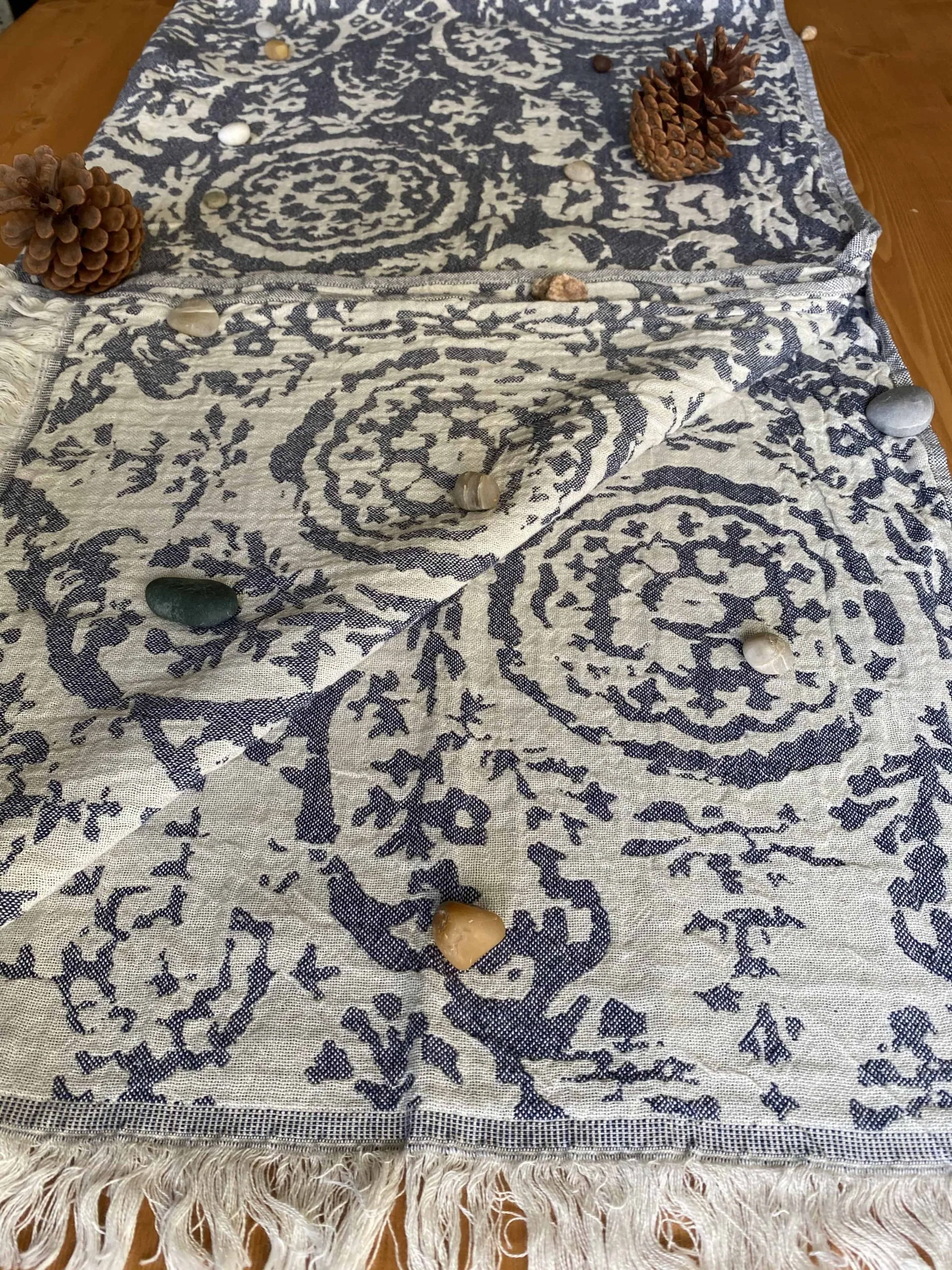 The fringes are all hand tied with exposed threads adding to the heirloom appeal of this towel. Our peshtemals are super absorbent and so soft to be used as a bath towel. Its natural texture and elegant look would also make it your favorite throw on your couch. This truly is one of the most versatile pieces you could own