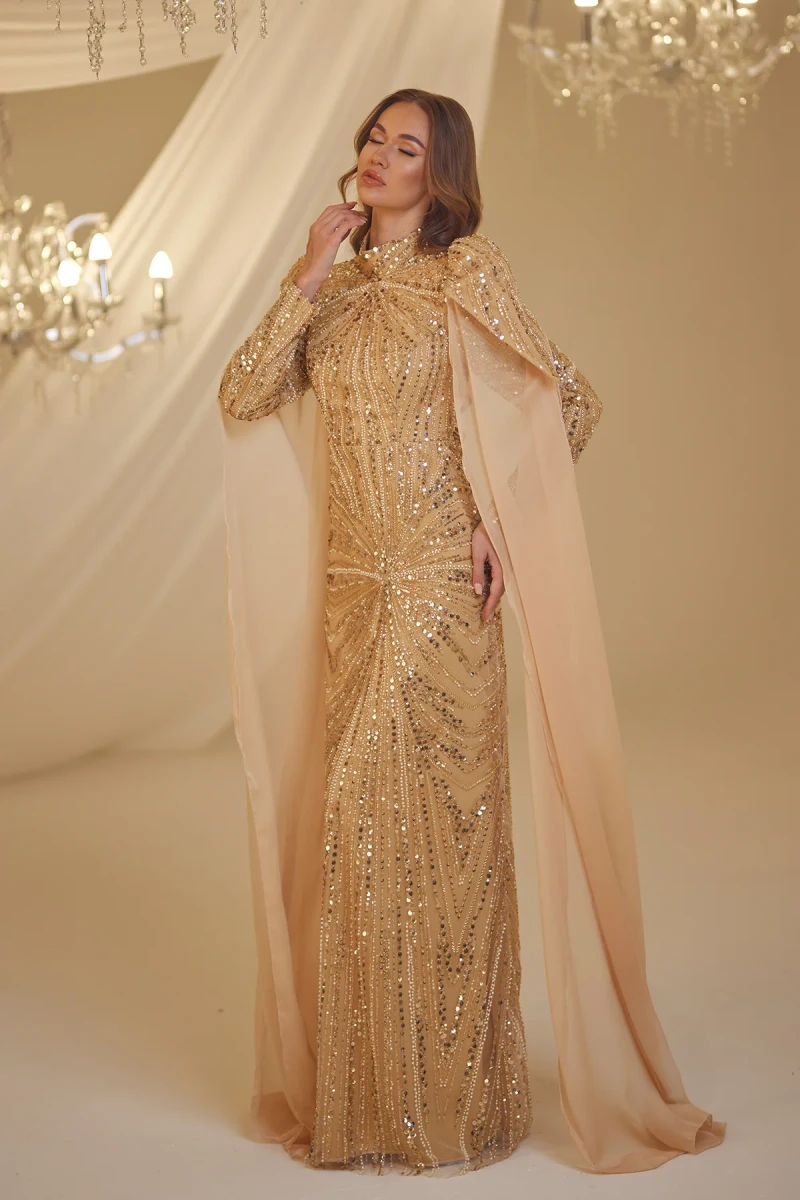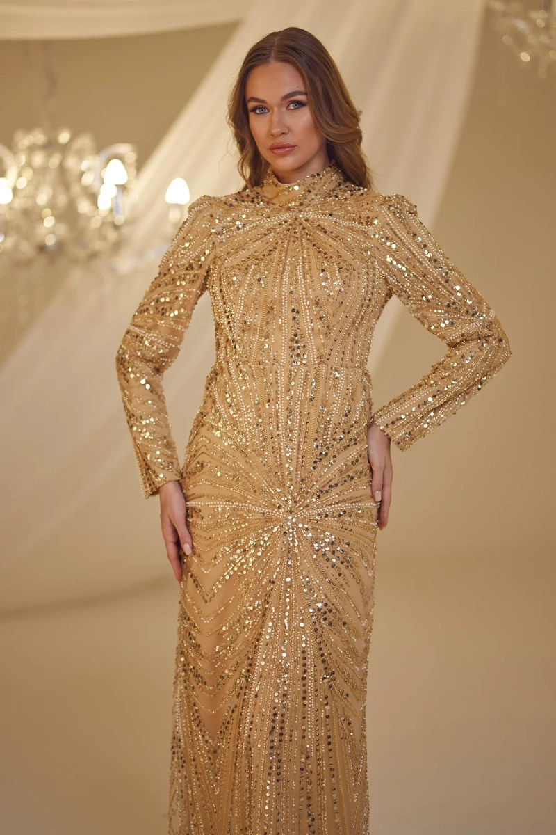 Perfect for weddings, engagements, and evening celebrations, this gown offers both elegance and modesty in a luxurious silhouette.