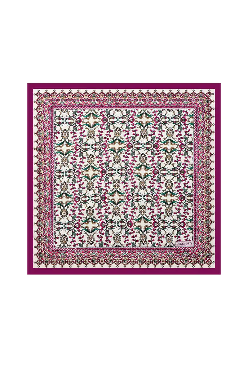 The Mürdüm Çini Lale Desen İpeksi Mendil is a silk-like handkerchief featuring a classic design that complements both formal and casual styles. Made from rayon with hand-rolled stitching, it measures 55×55 cm and originates from Bursa, Turkey.