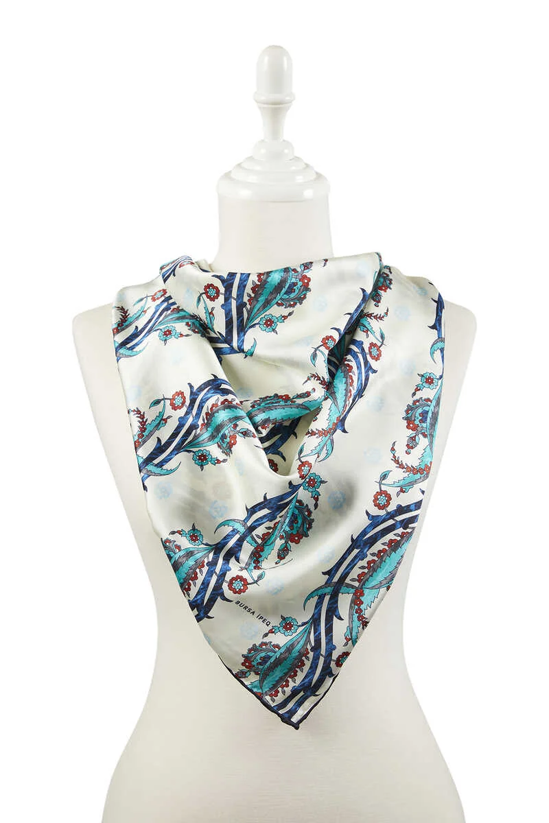 The Silky Scarf with Turkish Motif and Ivy Design features an elegant combination of ivy patterns on a silky rayon fabric. Measuring 90×90 cm, it provides ease of use while adding energy to your outfit with its bright and lively colors. Originating from Bursa, Turkey, this scarf is both fun and timeless.