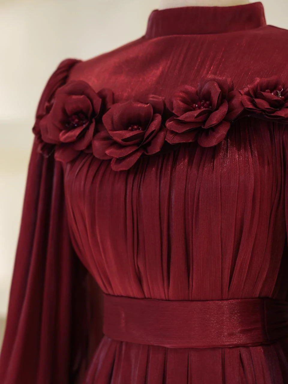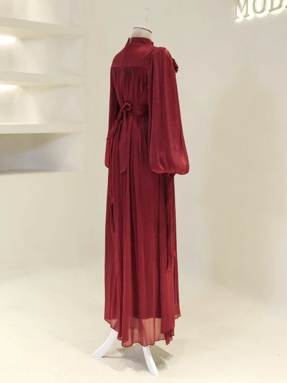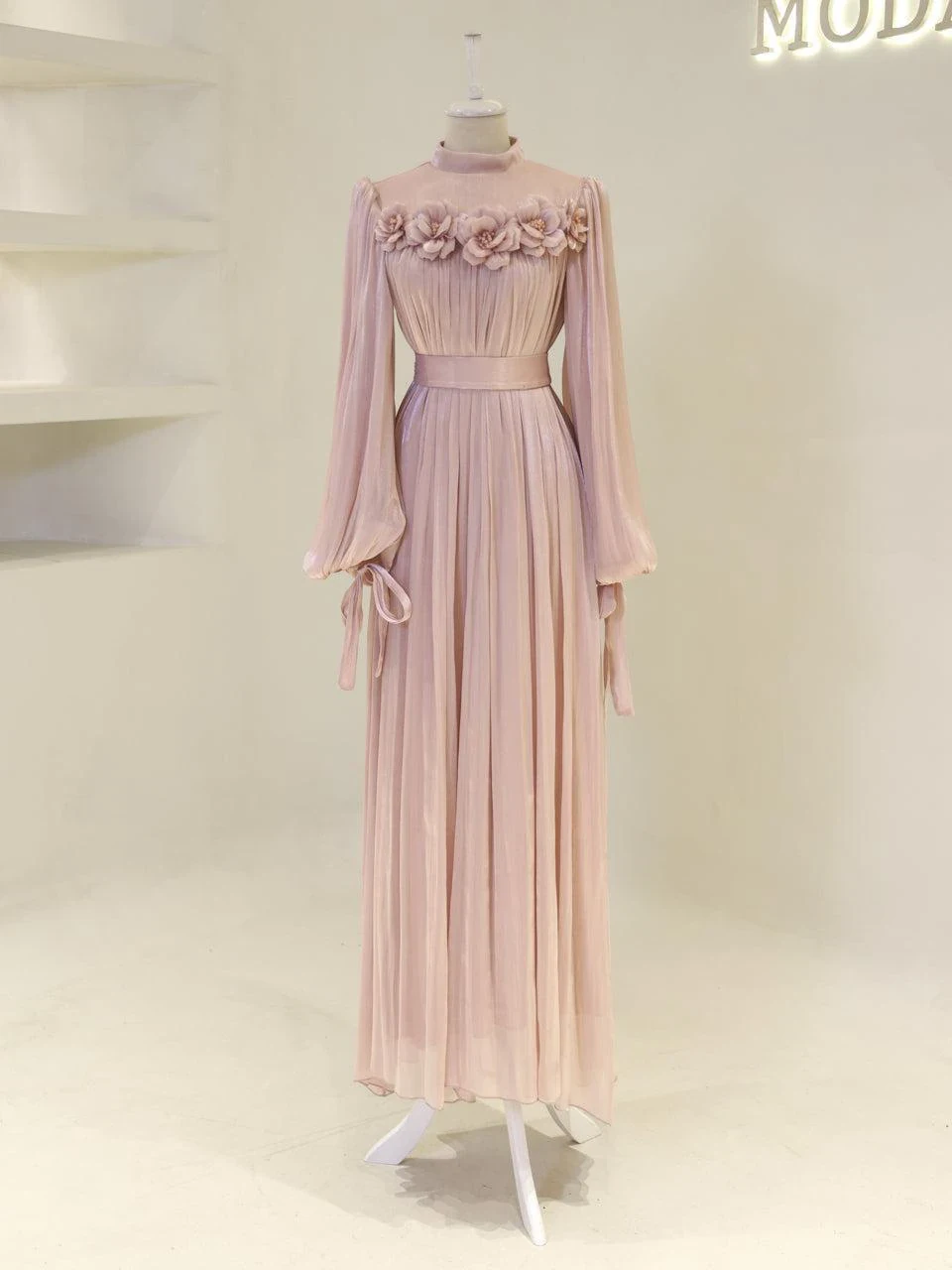 The Sorrel Modest Evening Dress is designed with precise tailoring for a perfect fit. Made from orchid fabric, this dress measures 150 cm in length and features a back zipper closure. The detachable belt adds versatility, while the balloon sleeves and tie cuffs provide a stylish touch. The dress is lined for comfort and durability, and the embellishments are securely attached. It has a straight skirt form.