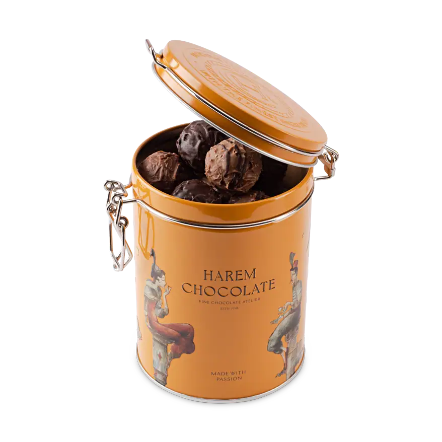 The Starry Metal Box Truffles | Milk & Dark are crafted with care and precision, offering a delightful blend of milk and dark chocolate fillings. These truffles are not only a treat for your taste buds but also come in a stylish metal box that can be reused as a decorative piece in your living space. Harem Chocolate ensures that each truffle provides a moment of joy, perfect for any occasion.