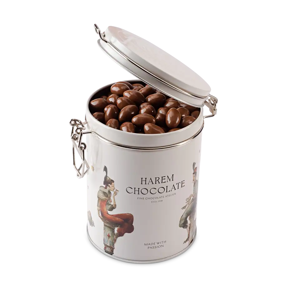 Discover the delightful taste of milk chocolate-coated peanuts, elegantly presented in a starry metal tin. These treats, crafted in our atelier, offer a classic yet essential indulgence. The tin not only preserves the freshness of the dragees but also serves as a charming keepsake for your living spaces. Enhance your special moments with the rich flavor of Harem Chocolate’s Milk Chocolate Peanut Dragees.
