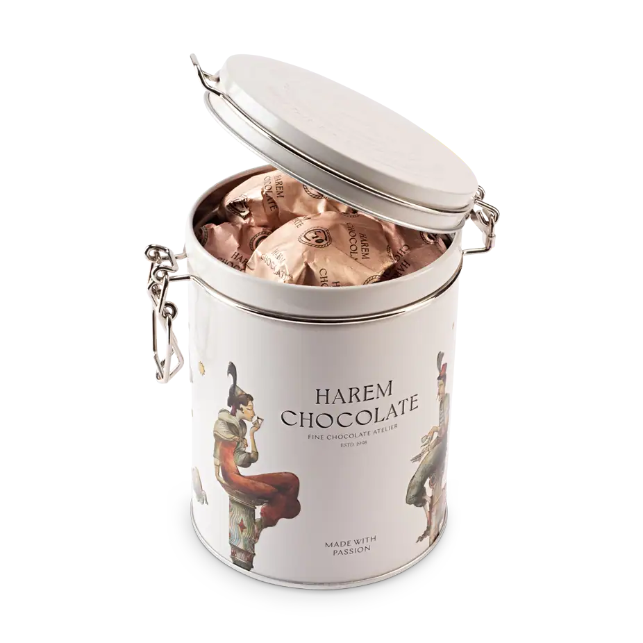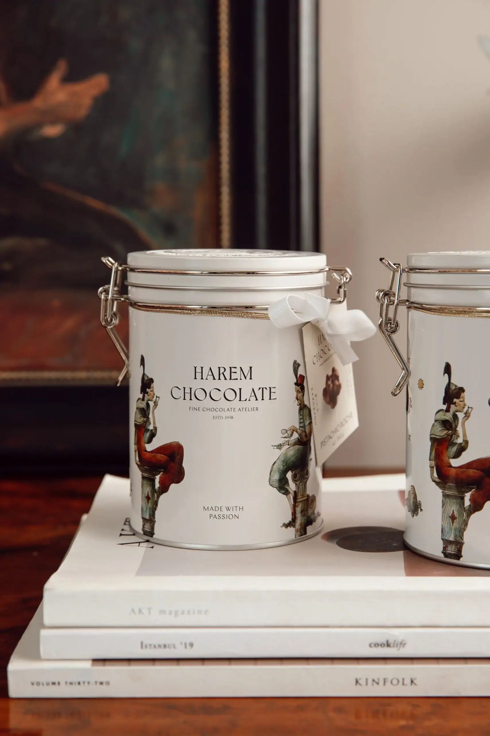 Starry Metal Tin with Pistachio Roch Chocolate | Milk & Dark – Harem Chocolate