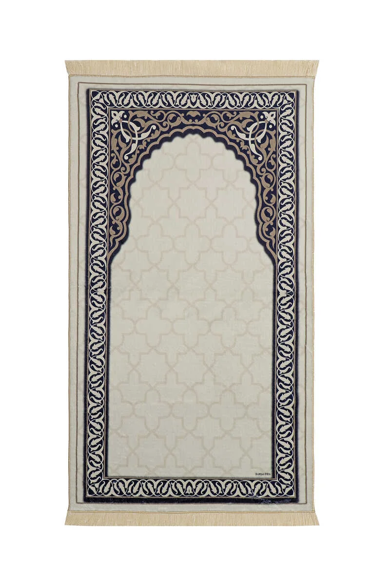 The Stone Bamboo Carpet Prayer Rug combines traditional Turkish motifs with ceramic patterns to create a decorative look. Made from bamboo, it measures 67×115 cm, offering a comfortable size for use. Originating from Bursa, Turkey, this rug is crafted to enhance your prayer experience while adding elegance to your space.