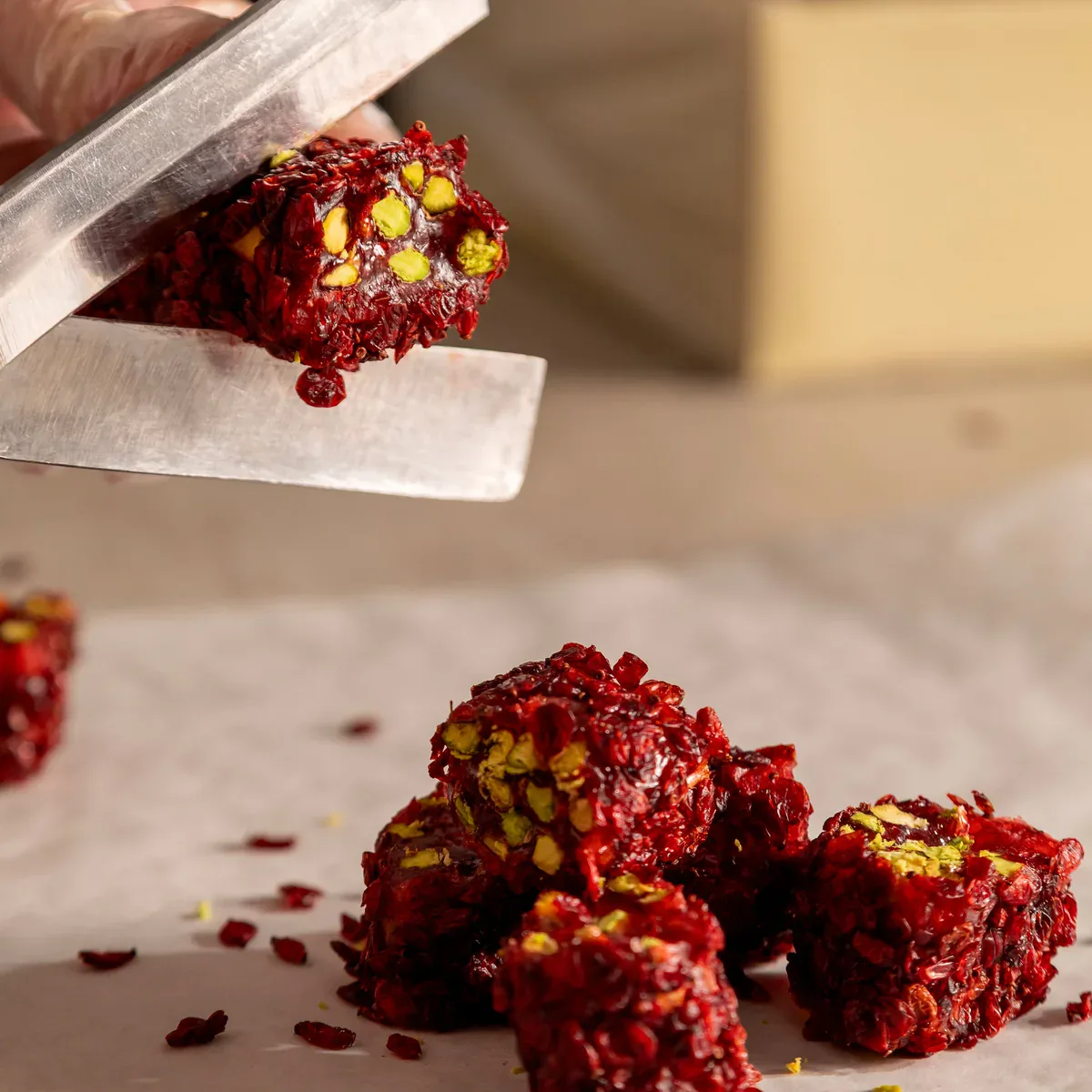 This sugar-free Turkish delight combines pomegranate, pistachio, and barberry for a unique taste experience. Produced in Turkey, it's freshly made and packaged to ensure quality. With a net weight of 1250 g, this treat is perfect for sharing with family and friends. Enjoy it as a fruity snack or as a delightful addition to your dessert table.