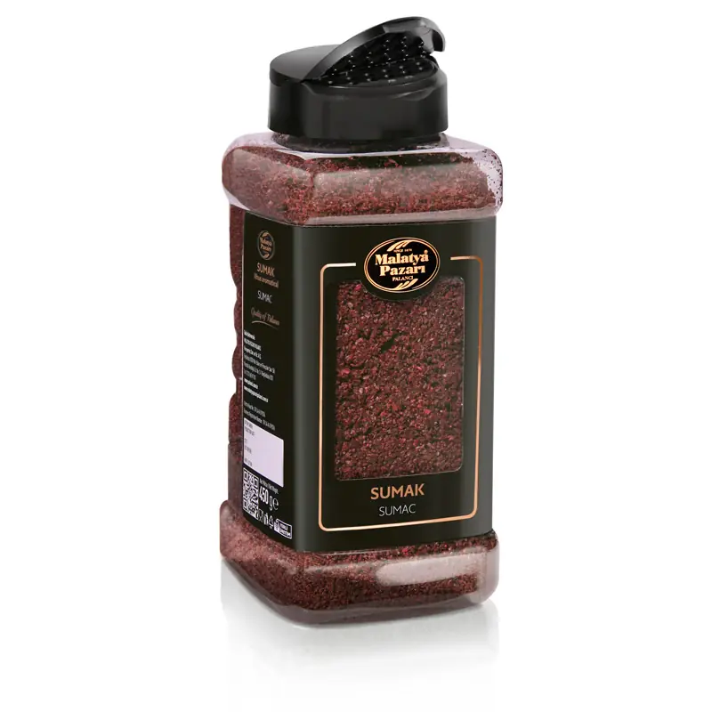 Sumac PET 500 G by Malatya Pazarı is a 500-gram package of sumac, a spice commonly used in Middle Eastern and Mediterranean cuisines to add a slightly sour and citrusy flavor to dishes. The product is packaged in a PET container, ensuring freshness and easy storage.