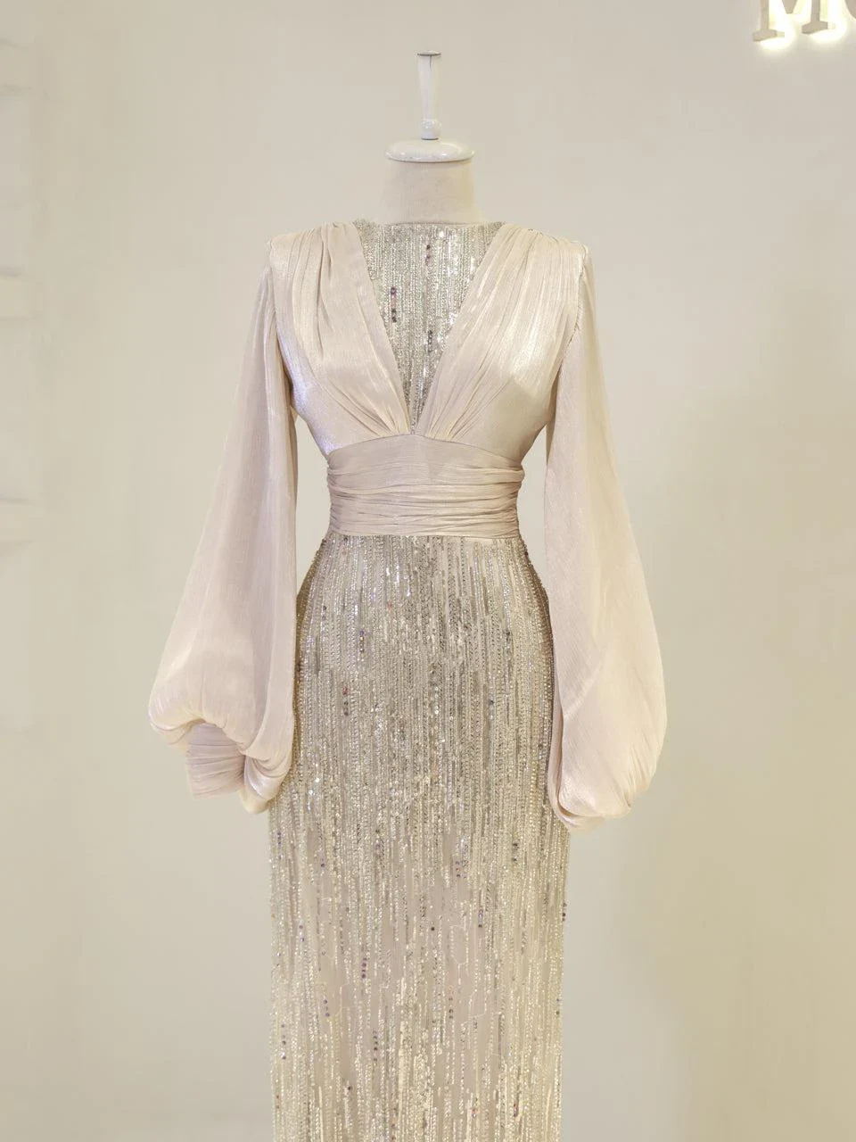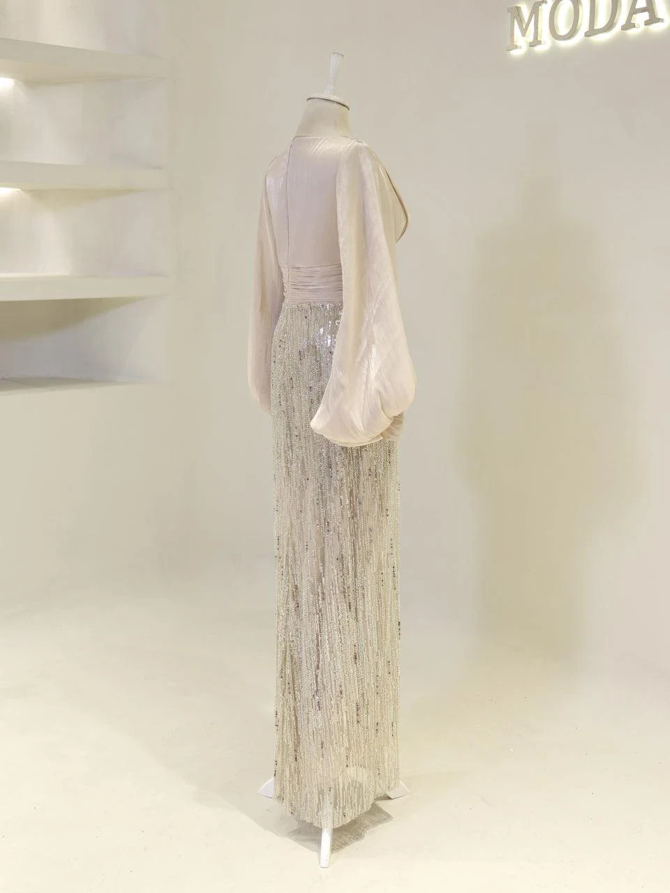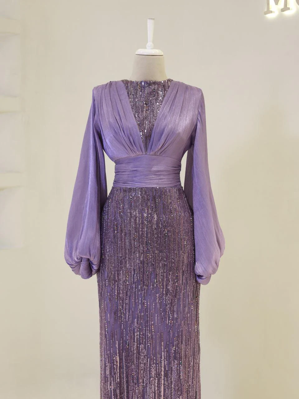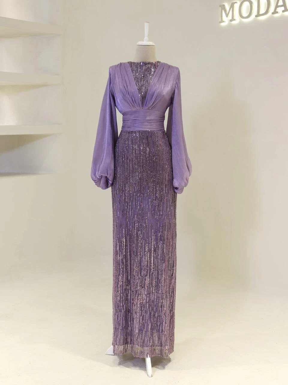 The Tomris Modest Evening Dress offers a perfect fit with an average length of 160 cm. Made from orchid fabric, this dress features a comfortable lining and a back zipper closure. The balloon sleeves add a touch of elegance, while the embellishments are securely attached, ensuring durability. The dress is designed in a pencil form, providing a sleek and sophisticated look.