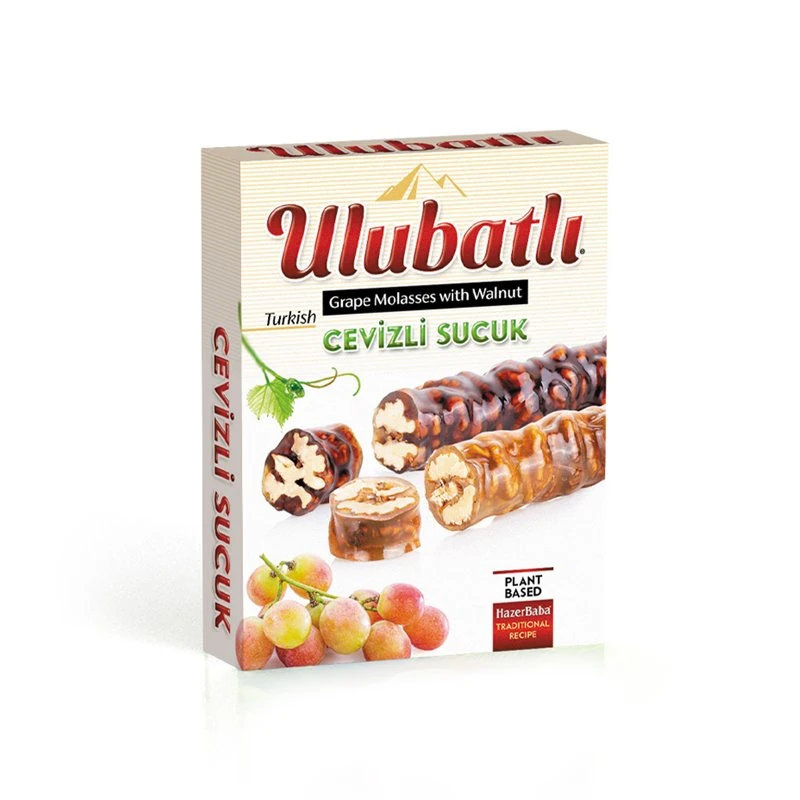Walnut Sucuk is a traditional Turkish confectionery made from figs and walnuts. This product may contain traces of other nuts, gluten, and sesame. It is a Turkish-made product.
